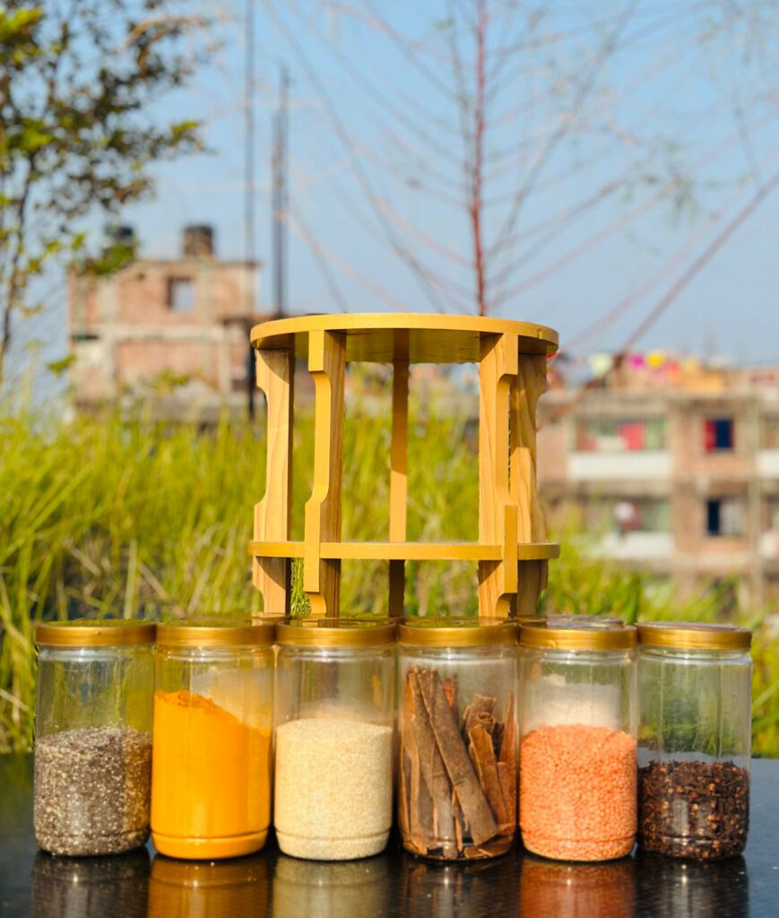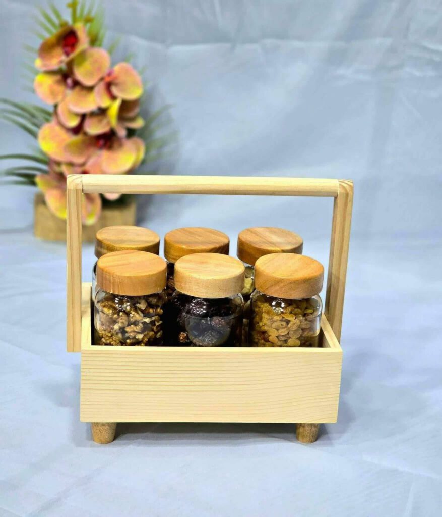 প্রিমিয়াম কাঠের স্ট্যান্ড সাথে (৬পিস 500ML কাচের জার ফ্রি)
