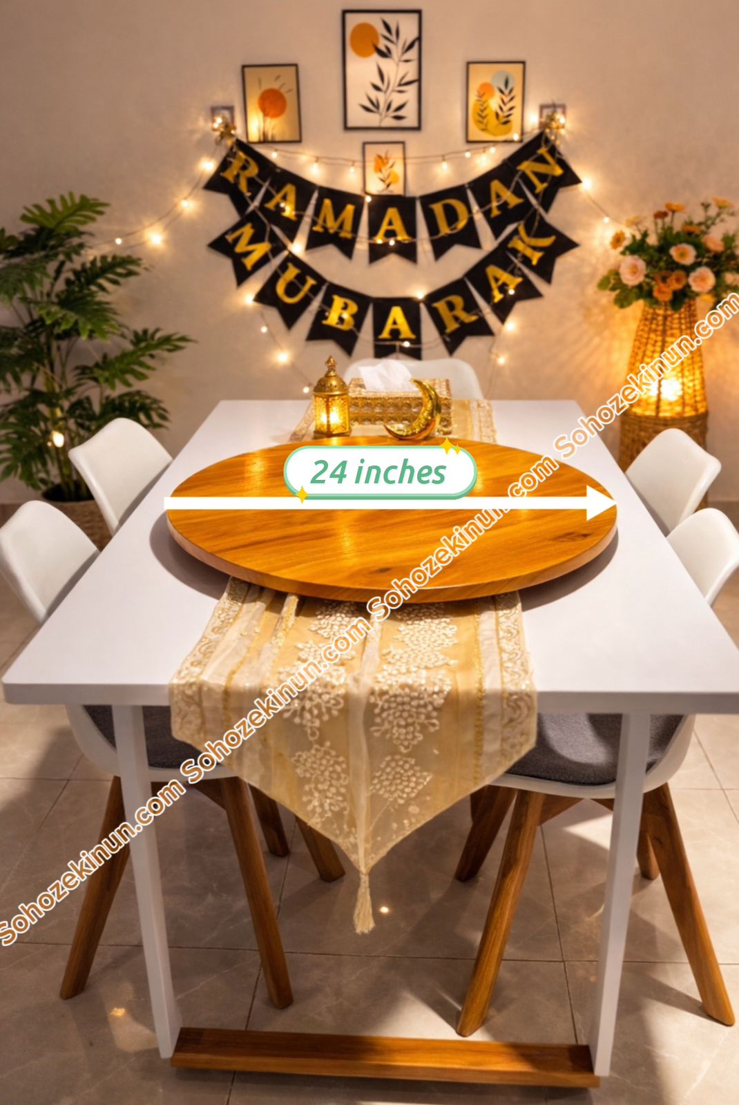 প্রিমিয়াম মেহেগুনি কাঠের ৩৬০° ঘূর্ণায়মান ২৪ ইঞ্চি টেবিল টপ ✨